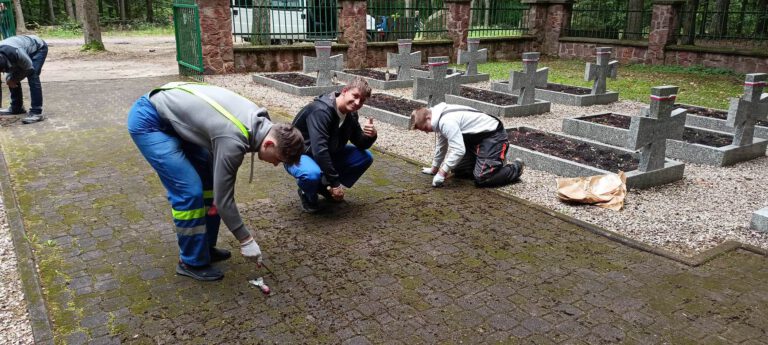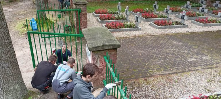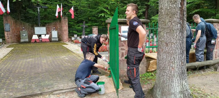 Uczniowie zawodów budowlanych w ramach zajęć praktycznych przyczynili się do poprawy wyglądu ogrodzenia cmentarza wojennego Armii Krajowej wykonując niezbędne prace związanie z jego renowacją.